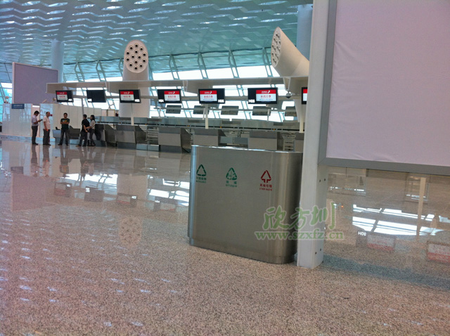 為了裝飾寶安國際機場T3航站樓和GTC大樓的環(huán)境衛(wèi)生,深圳市機場股份有限公司于2013年4月在我公司訂購了2733個垃圾桶,包括有大型不銹鋼垃圾桶、自棄桶、阻燃桶和接水桶等多種材質的垃圾桶。