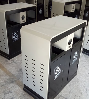 戶外鋼板烤漆環保垃圾桶批量生產圖