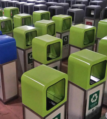 欣方圳三分類鐵板噴塑垃圾桶批量生產圖