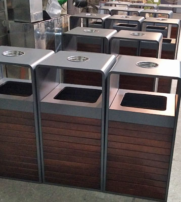 欣方圳戶外鋼木分類果皮箱批量生產圖