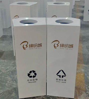 欣方圳在上一篇文章分享了廣州綠地繽紛城購物中心戶外4分類不銹鋼果皮箱,在不銹鋼表面上做白色噴塑工藝,一改不銹鋼本色的單調,增添產品的高度屬...