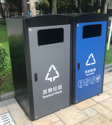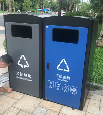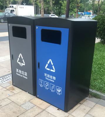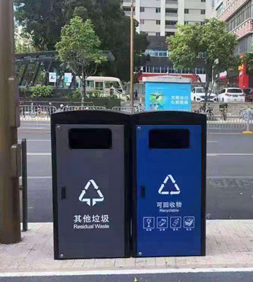 • 使用范圍:深圳兩分類箱體套桶廣泛應用于市政道路、商業街、臨街店鋪、地鐵車站、機場等戶外垃圾分類。